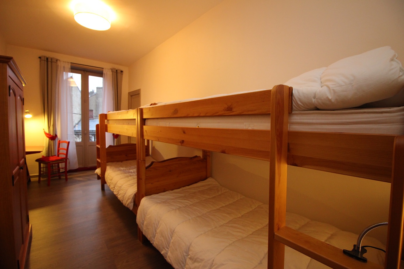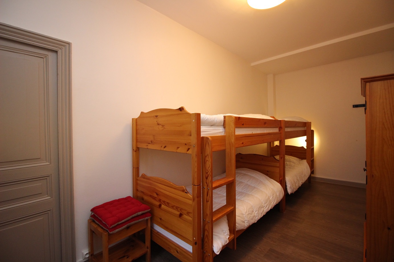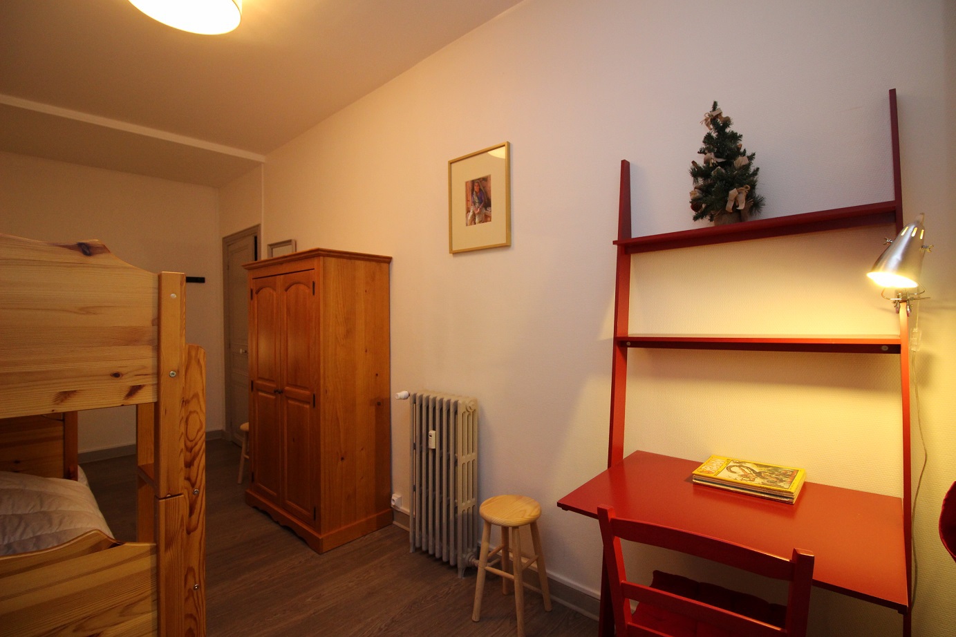 Une chambre avec 2 X 2 lits superposés et rangements,