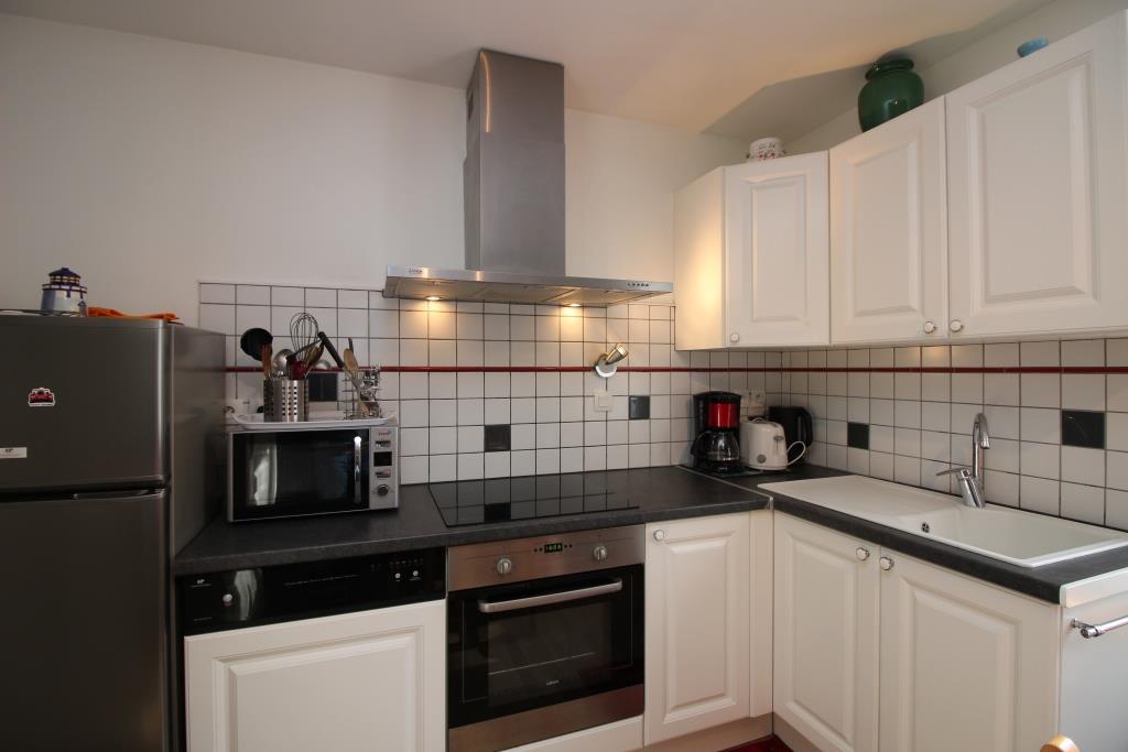 Pièce à vivre avec cuisine US équipée avec four, plaque vitro, réfrigérateur grand modèle /congélateur, lave vaisselle, four micro-ondes ....