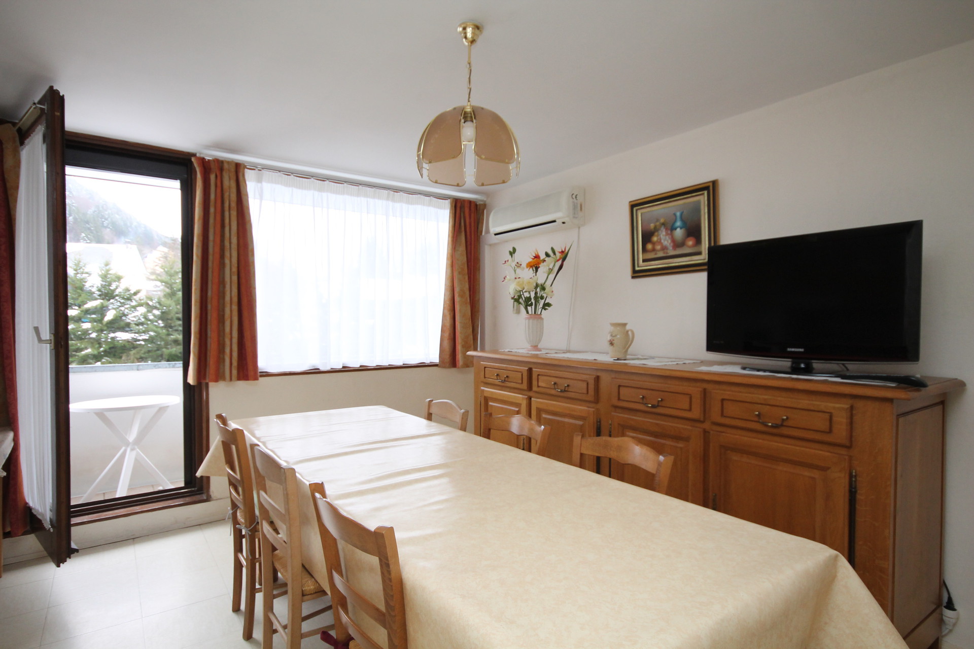 Petite résidence au calme située à 500m du centre du Mont-Dore et des Thermes, petit immeuble de 4 étages avec ascenseur, espaces verts, gardien, parkings. En hiver navette gratuite à proximité.