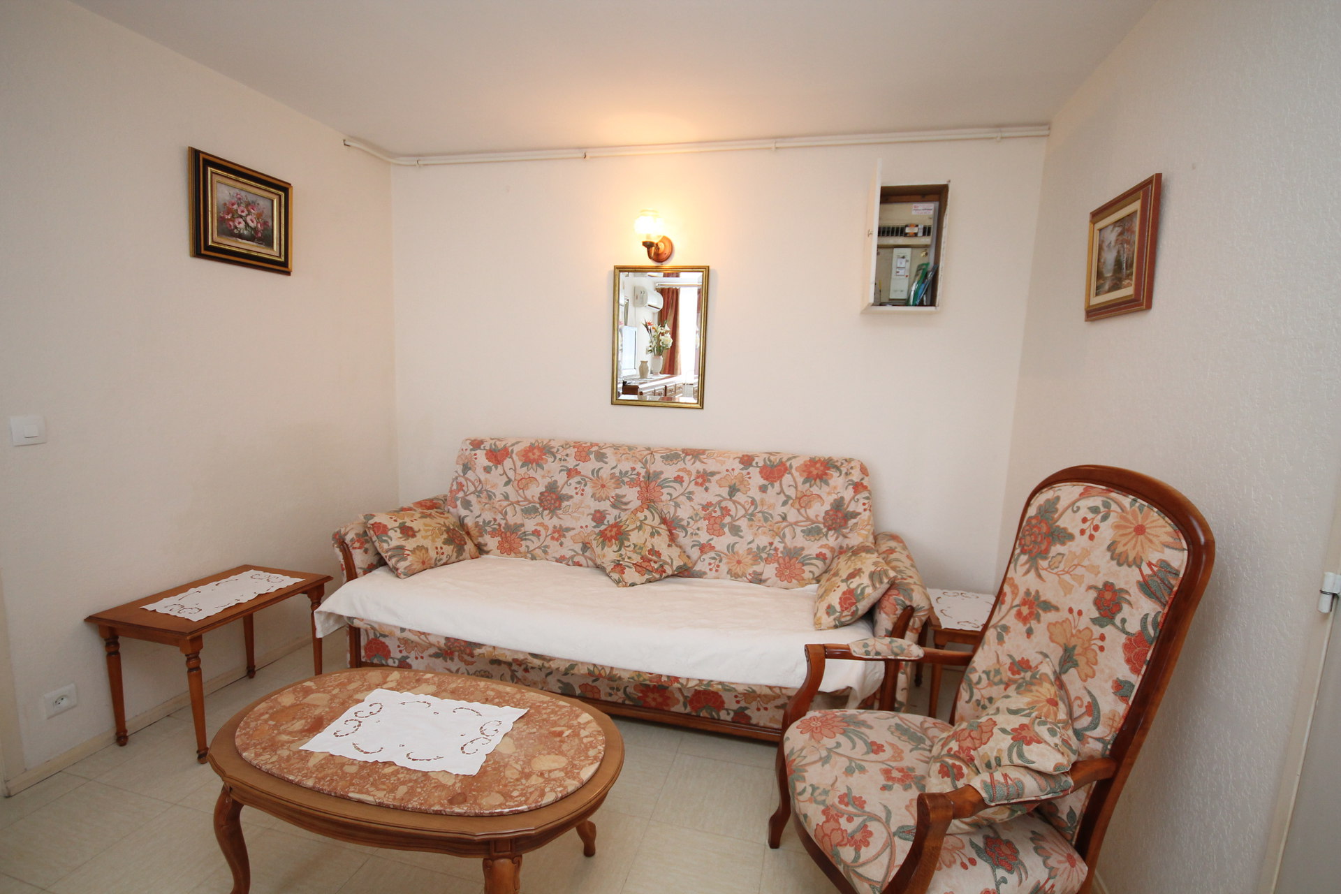 Hall d'entrée, pièce à vivre lumineuse avec un canapé convertible 2 personnes