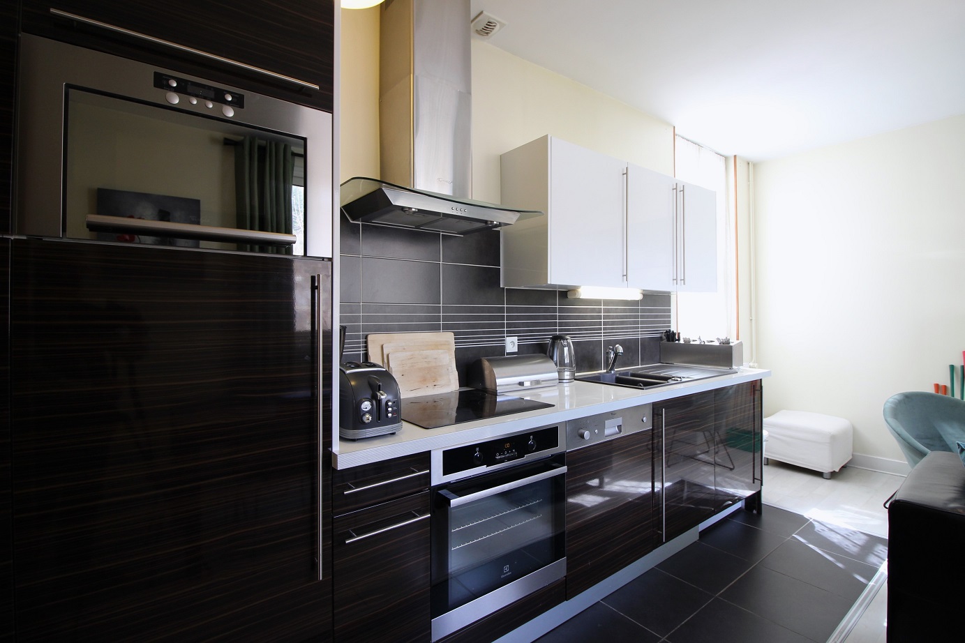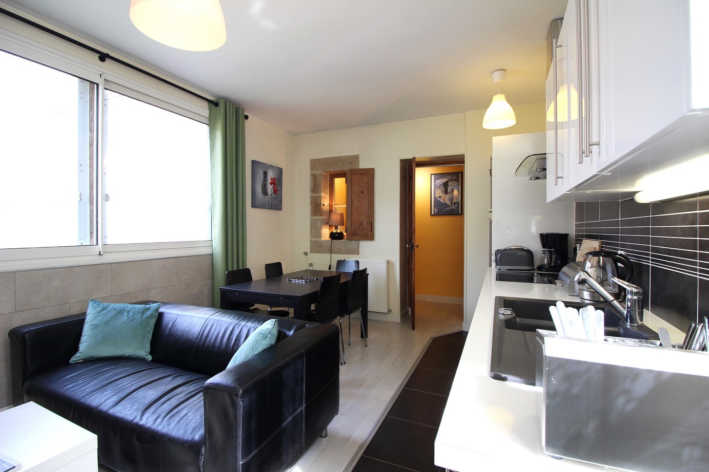 Cet appartement est composé d'une entrée, une pièce à vivre avec cuisine US équipée avec plaque vitrocéramique 4 zones, hotte, four, micro-ondes, réfrigérateur grand modèle avec congélateur, lave-vaisselle, lave-linge séchant ...
