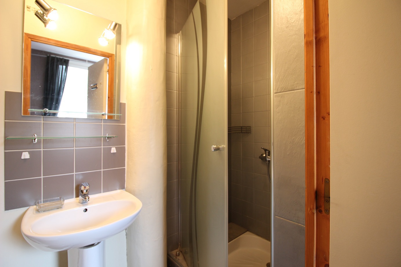 A l'étage une chambre avec lit 140 + lit d'appoint 1 personne, rangements, télévision et salle d'eau privative (douche)/wc.