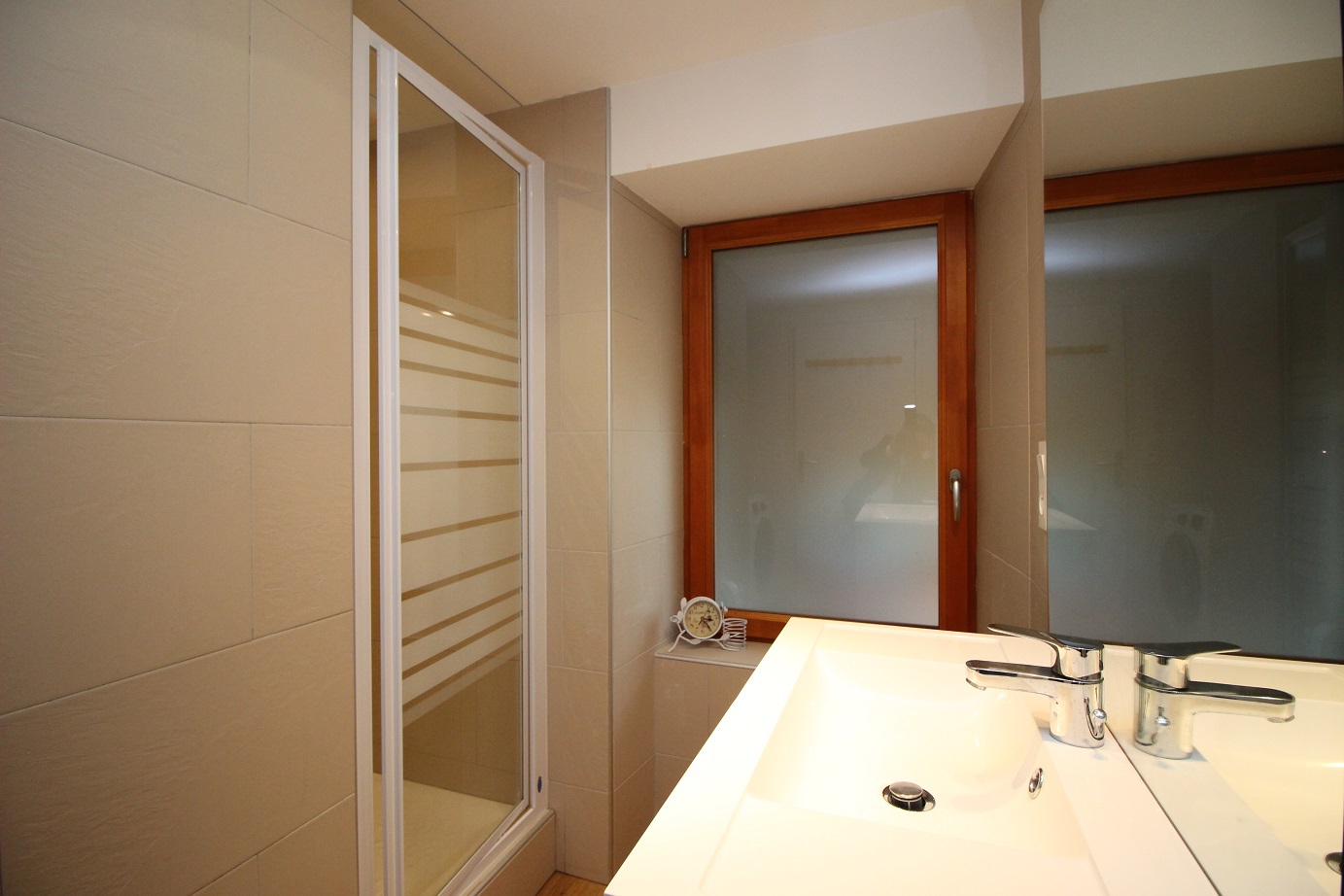 une salle d'eau (douche) lave linge sèchant, sèche-serviettes,