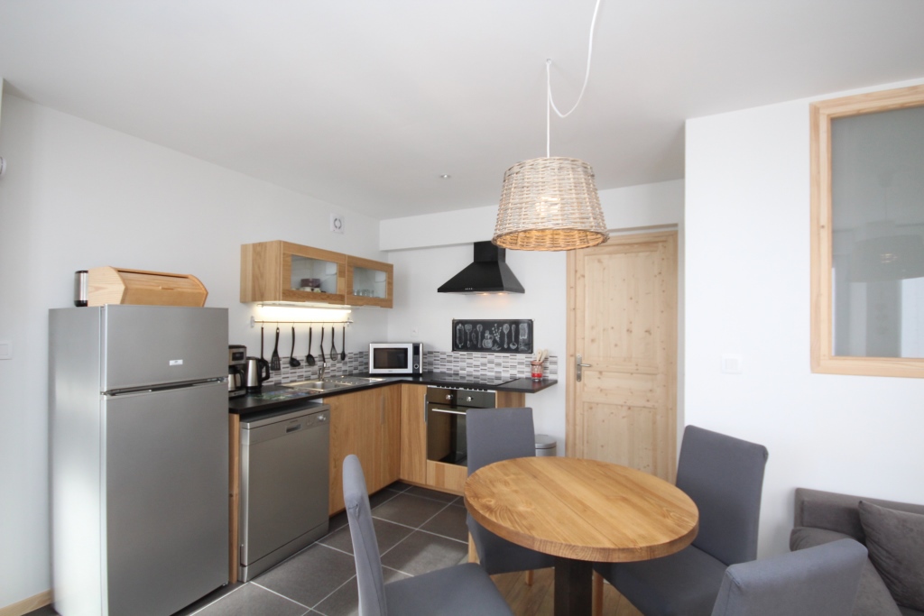 Il se compose d'une pièce à vivre avec cuisine US équipée comprennant four, plaques vitrocéramiques, lave vaisselle, réfrigérateur / congélateur ...