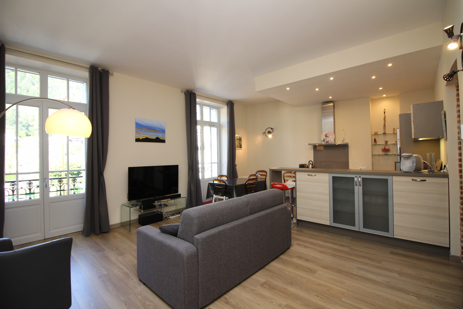Spacieux appartement T3 de 61m² avec balcon exposé Ouest et bénéficiant d'une agréable vue en hyper centre et à 40m des Thermes. Proximité des navettes gratuite pour rejoindre les pistes de ski en hiver.