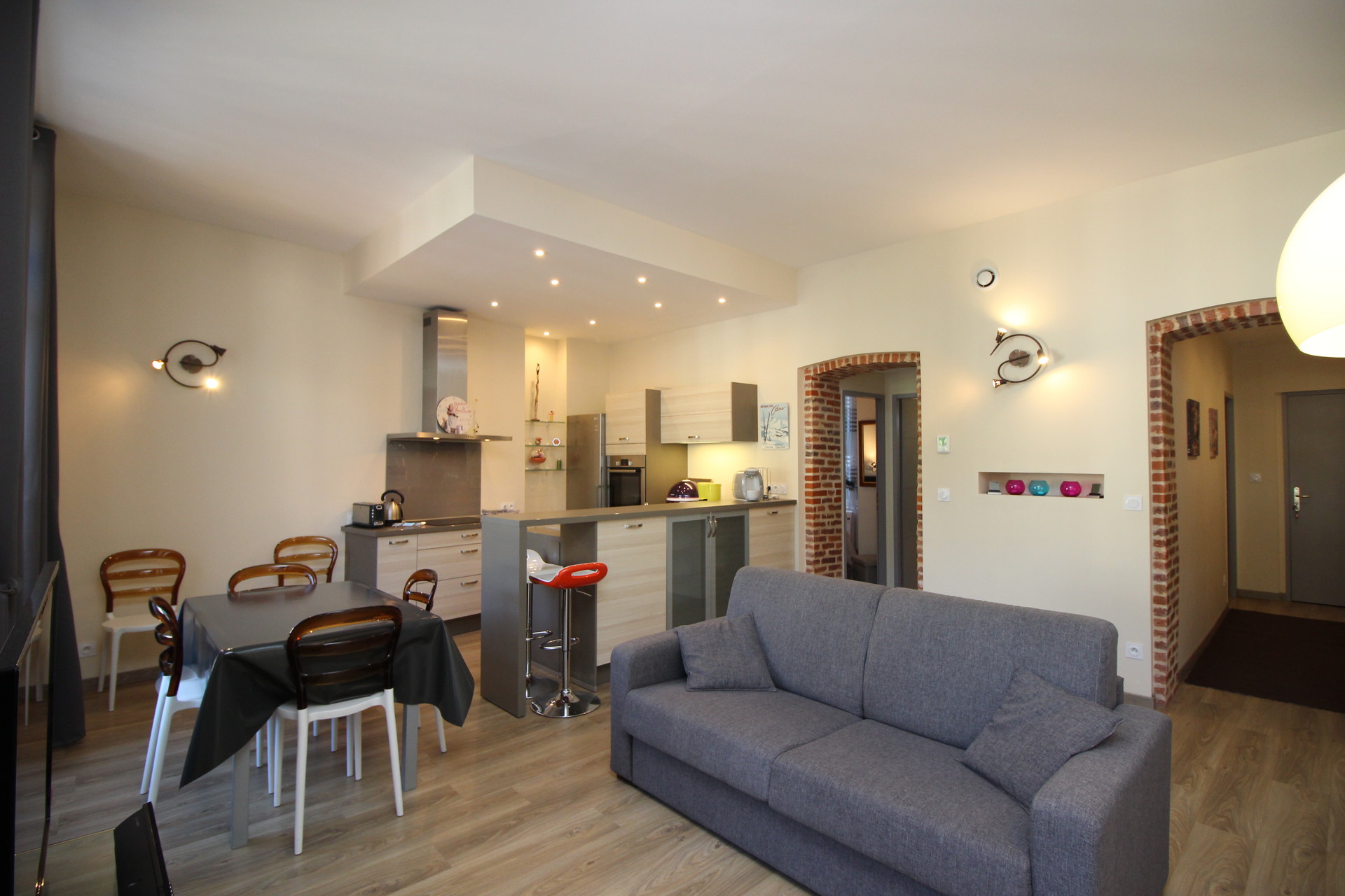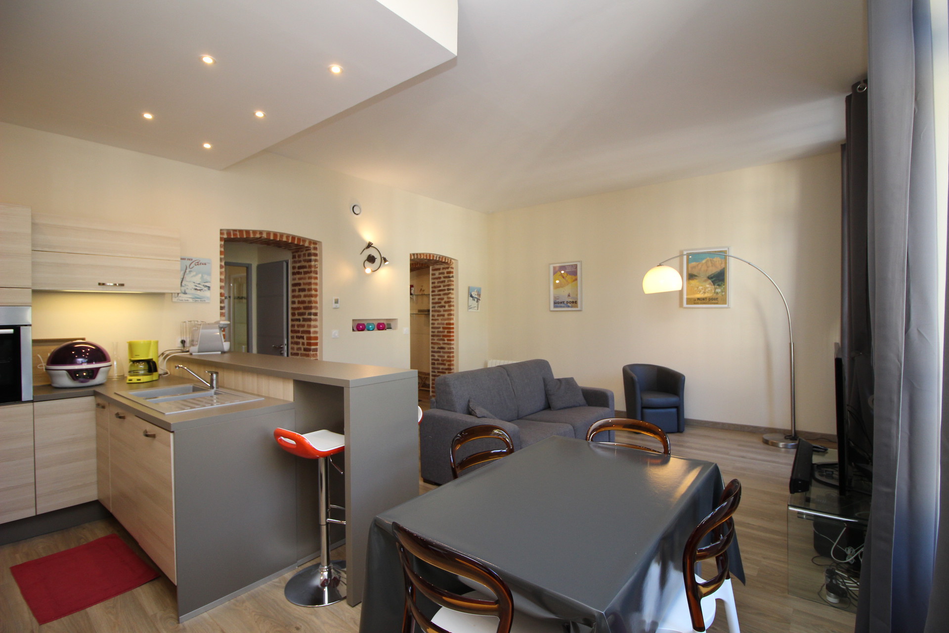 Il est composé dune entrée, pièce à vivre avec espace repas et salon équipé d'un convertible en couchage 2 personnes 160, téléviseur grand écran avec barre de son, lecteur DVD.