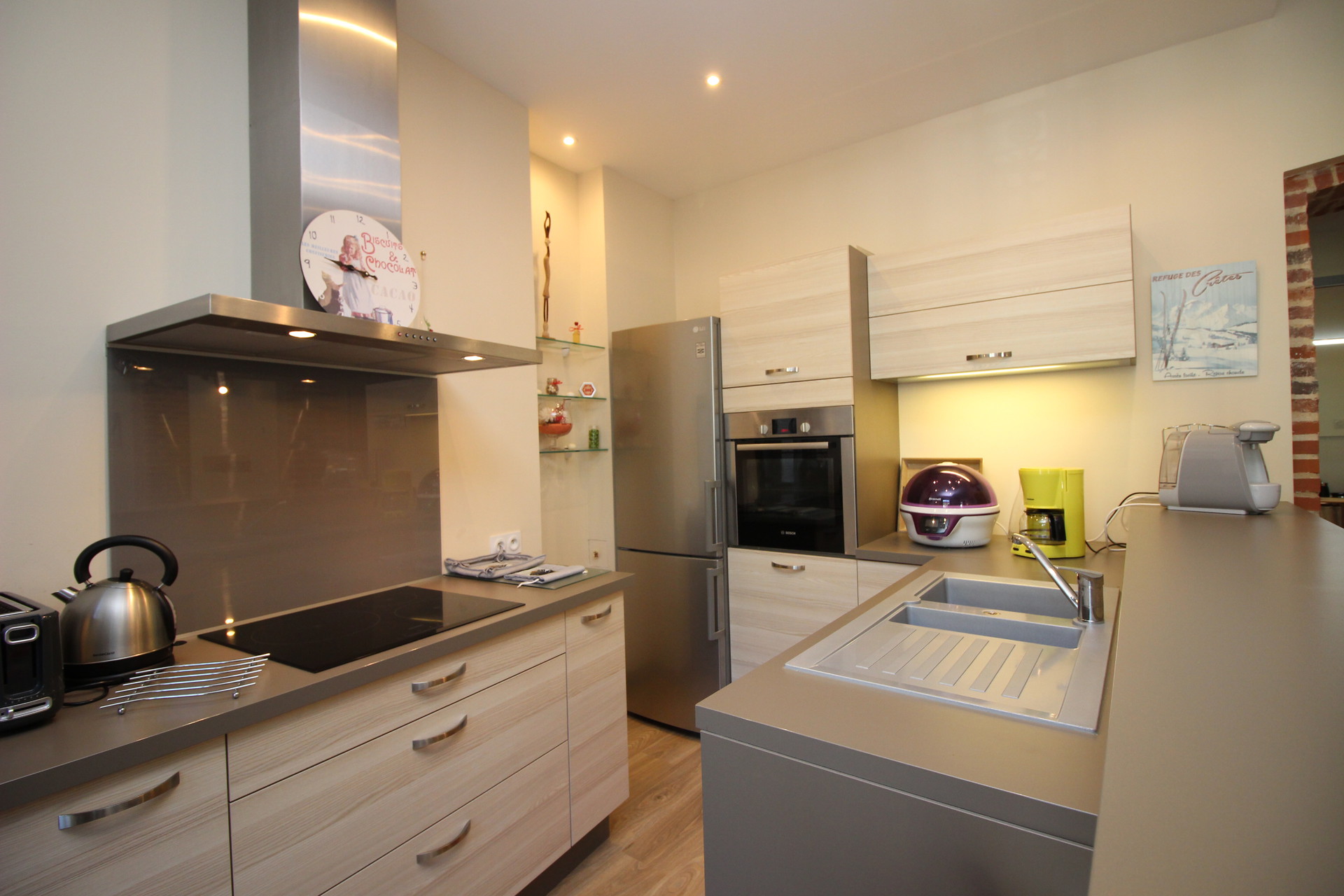 Cuisine US entièrement équipée avec réfrigérateur / congélateur grand modèle, four, lave vaisselle, plaque induction, micro-ondes ...