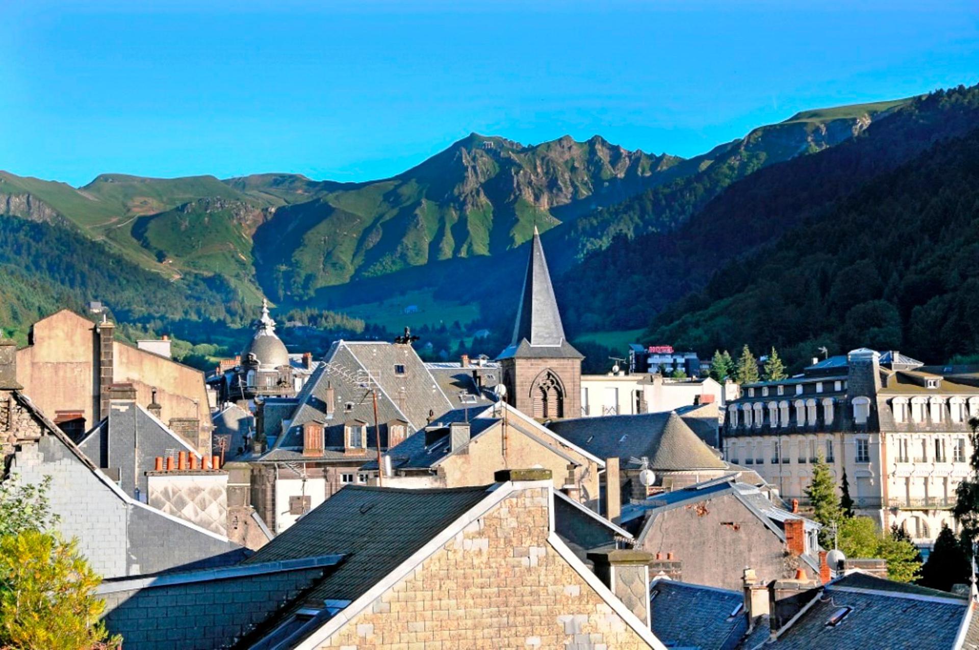 LE MONT-DORE situé à une altitude de 1050m, au pied du Puy de Sancy (1886m), point culminant du massif central où la source de La Dordogne y prend sa source.