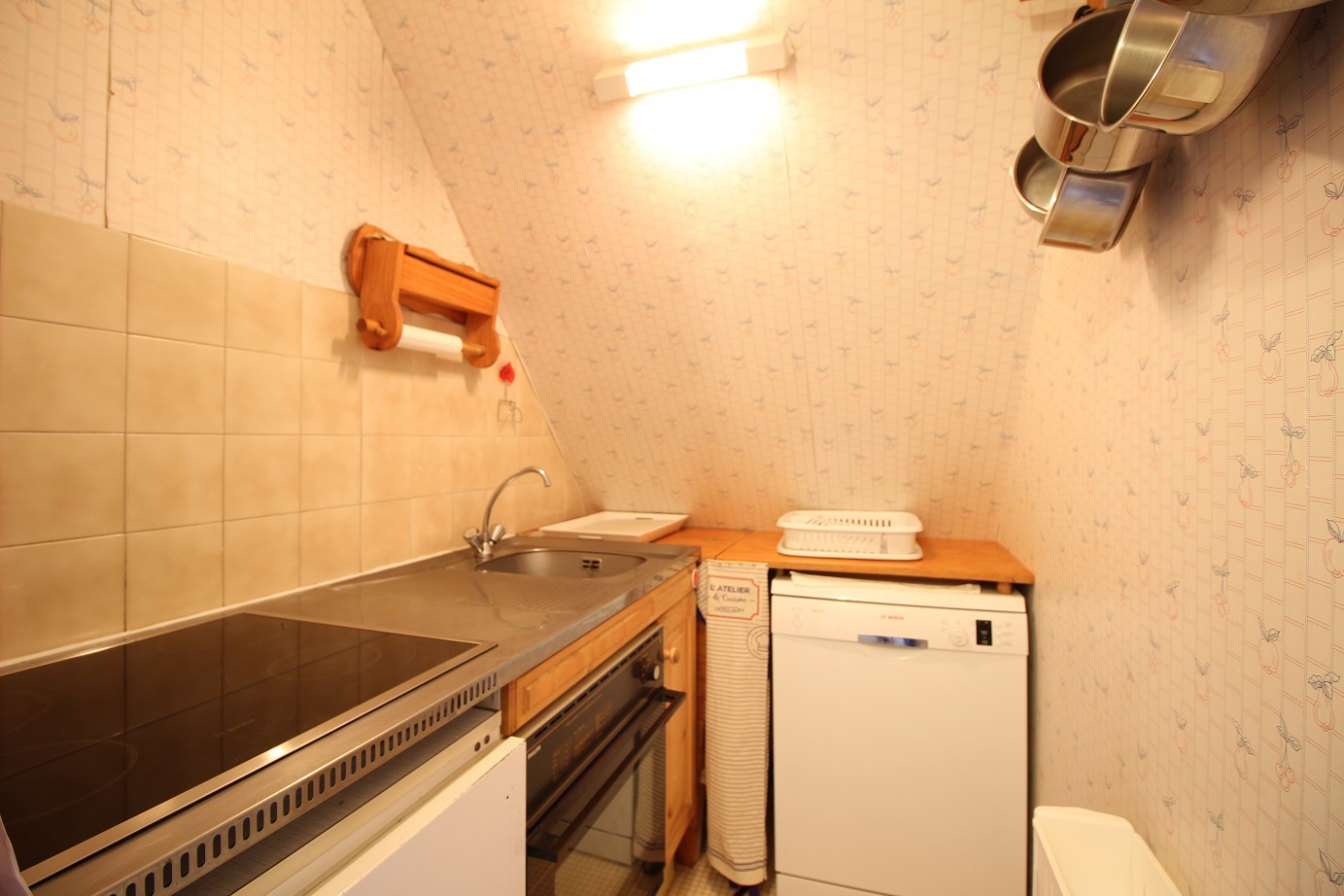 Kitchenette équipée : Plaques électriques, four, réfrigérateur Top et micro ondes.