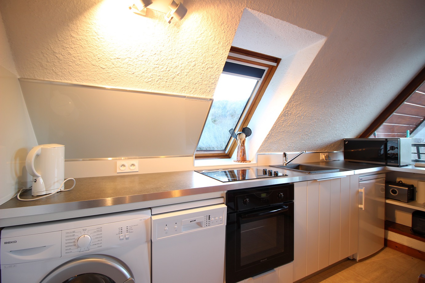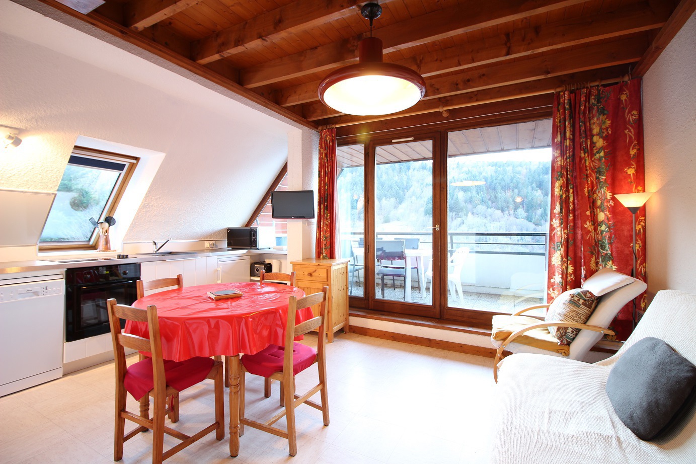 Il se compose d'une entrée, une pièce à vivre ouvrant sur balcon/terrasse - un canapé convertible en couchage 2 personnes (clic-clac),