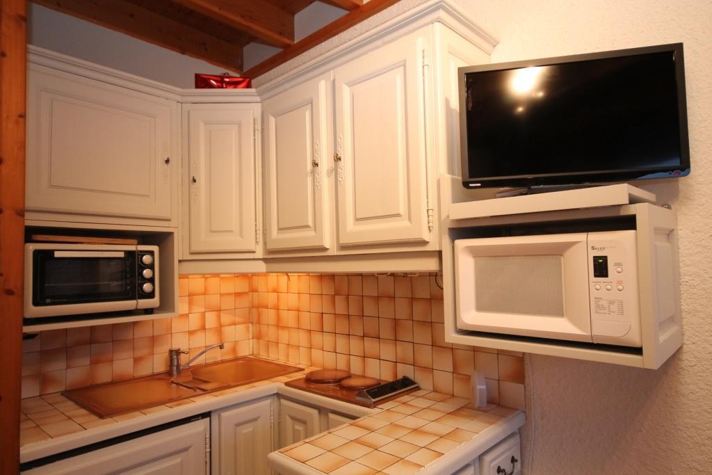 Kitchenette équipée : plaques électriques, four, réfrigérateur Top et micro-ondes, lave-vaisselle