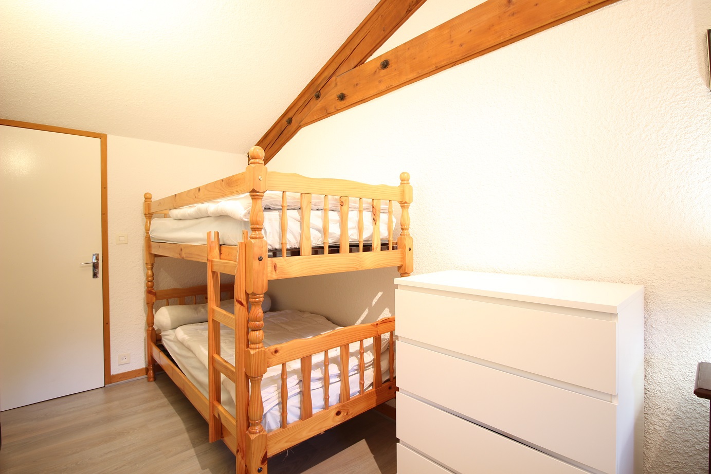 A l'étage, une chambre avec un lit 2 personnes 140 et 2 lits 1 personne superposés (90)