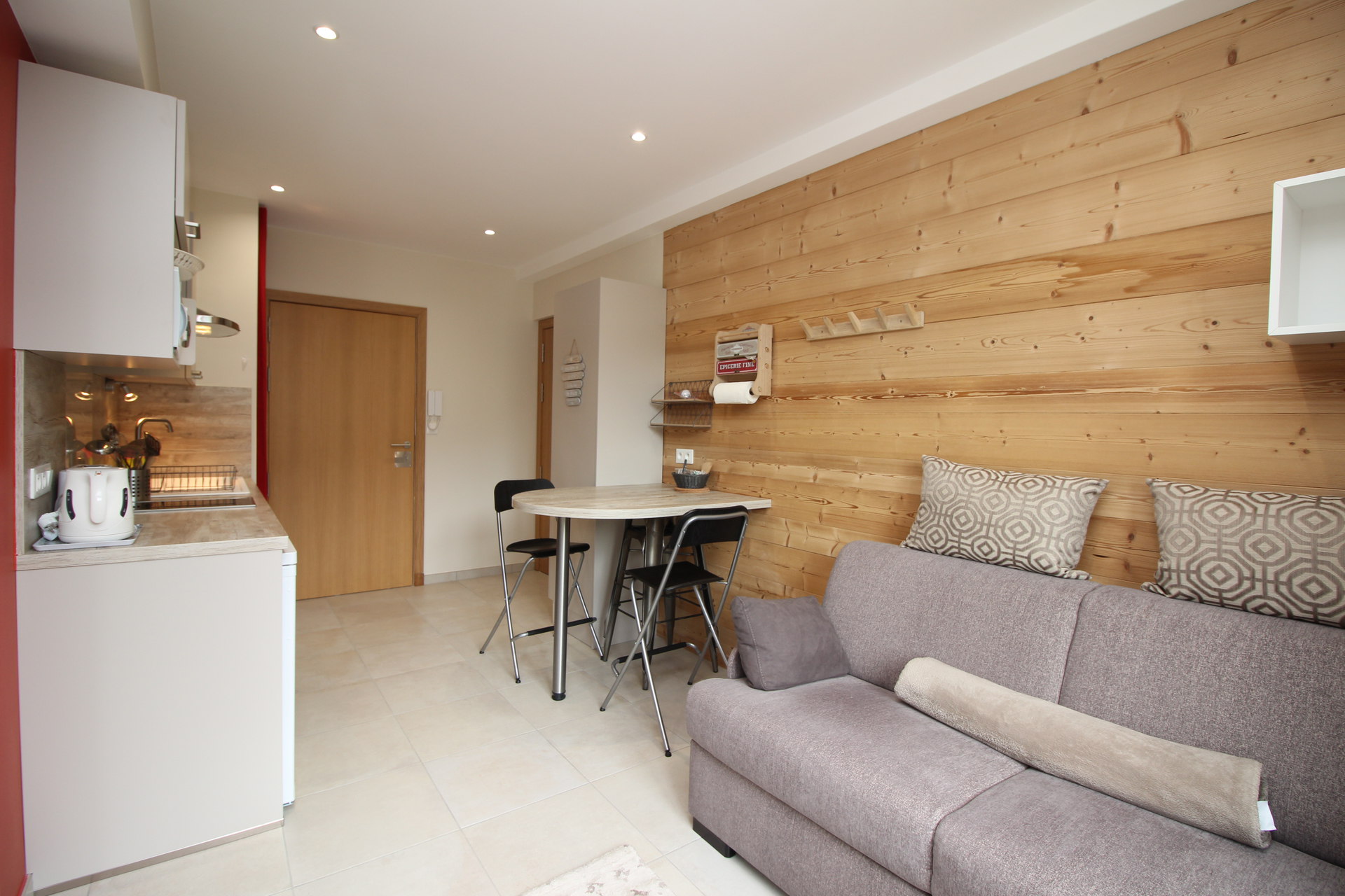d'un espace à vivre avec coin salon (canapé convertible type rapido),