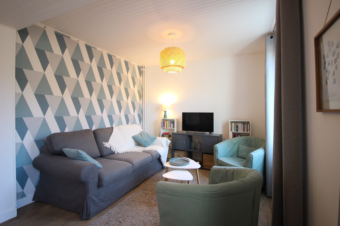 Un agréable et lumineux séjour / salon éclairé par deux fenêtres bénéficiant d'une vue sur jardin.