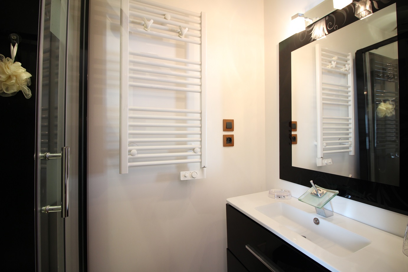 Une salle d'eau avec douche et un wc indépendant. Lave-linge.