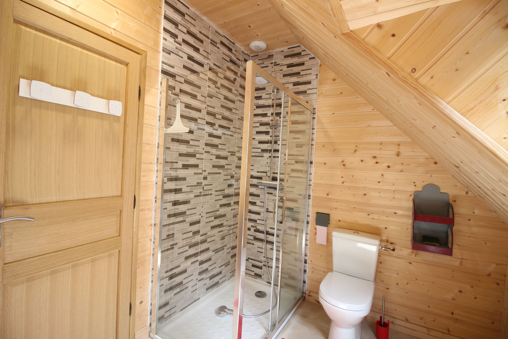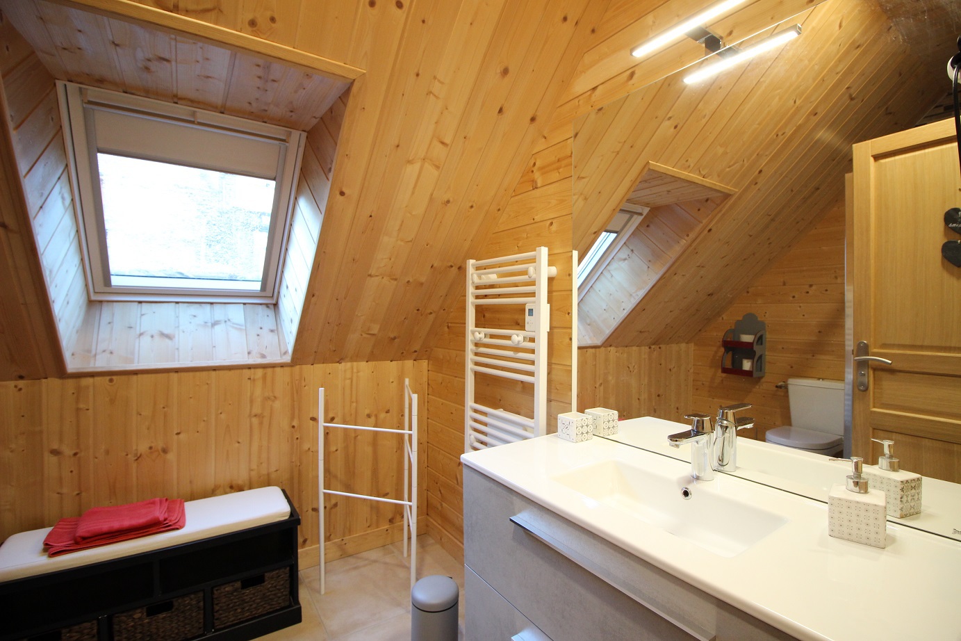 Salle d'eau (douche) avec wc et séche-serviettes.