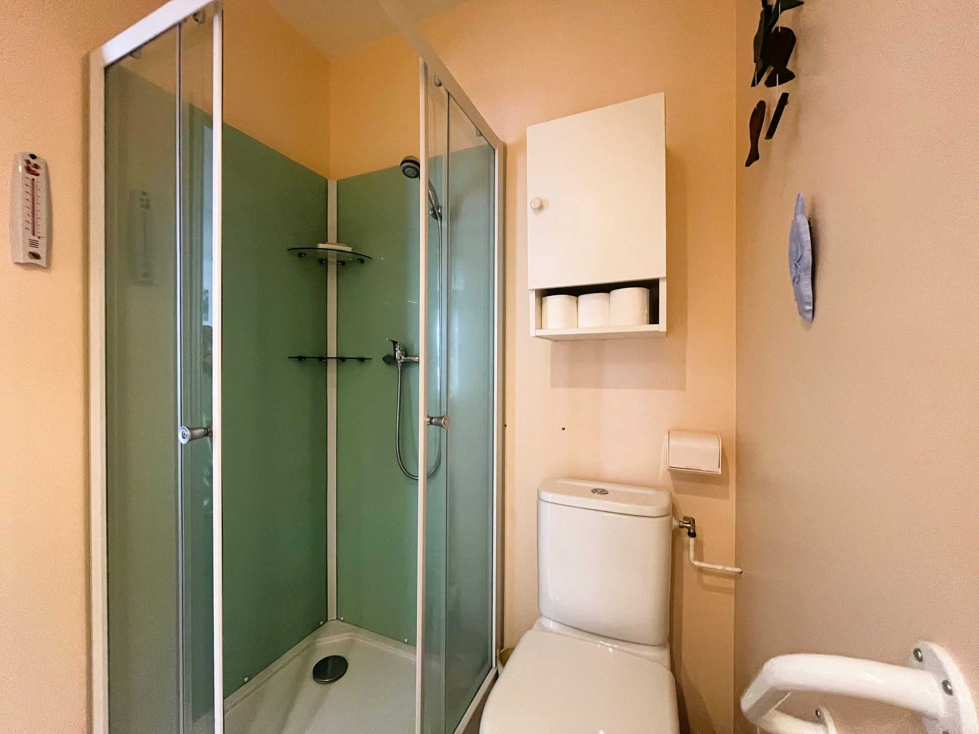 Mais encore, l'appartement dispose d'une petite chambre avec télévision et d'une salle d'eau avec douche et WC. Lave-linge et séche-linge.