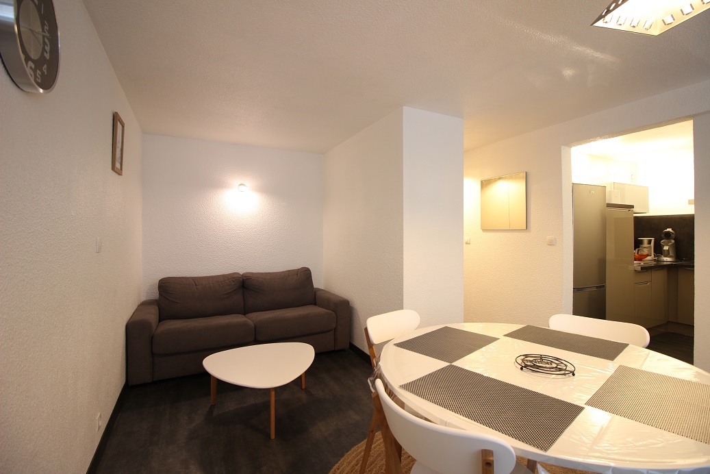 Un séjour ouvrant sur balcon exposé Est équipé d'un convertible en couchage double de type rapido.
