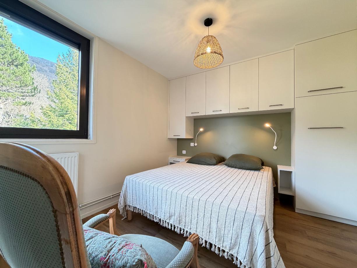 A 200m du centre, des thermes et de toutes commodités, bel appartement de type 2 de 34m² entiérement rénové en rez-de-chaussée surélevé, bénéficiant d'une belle vue sur la grande cascade.