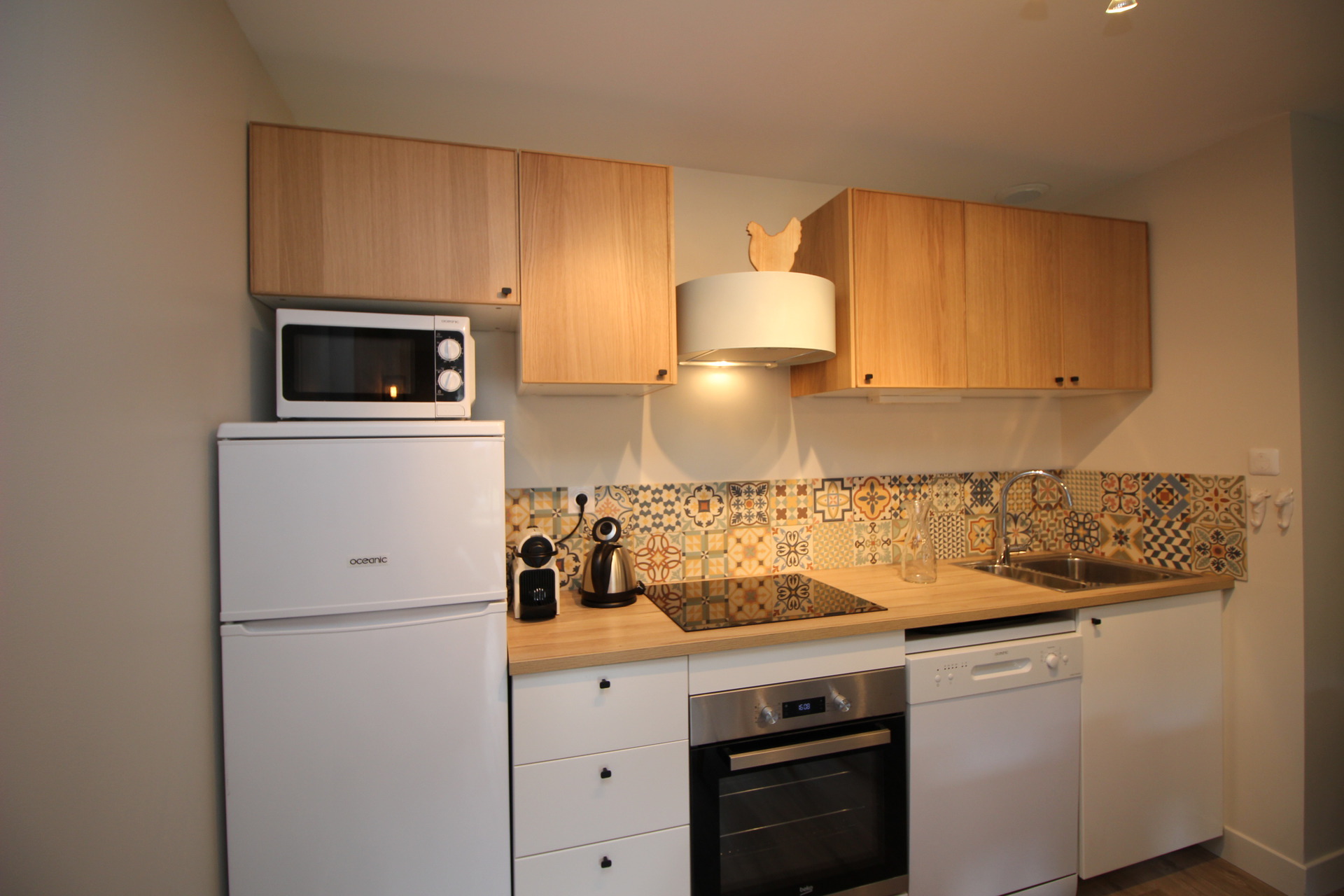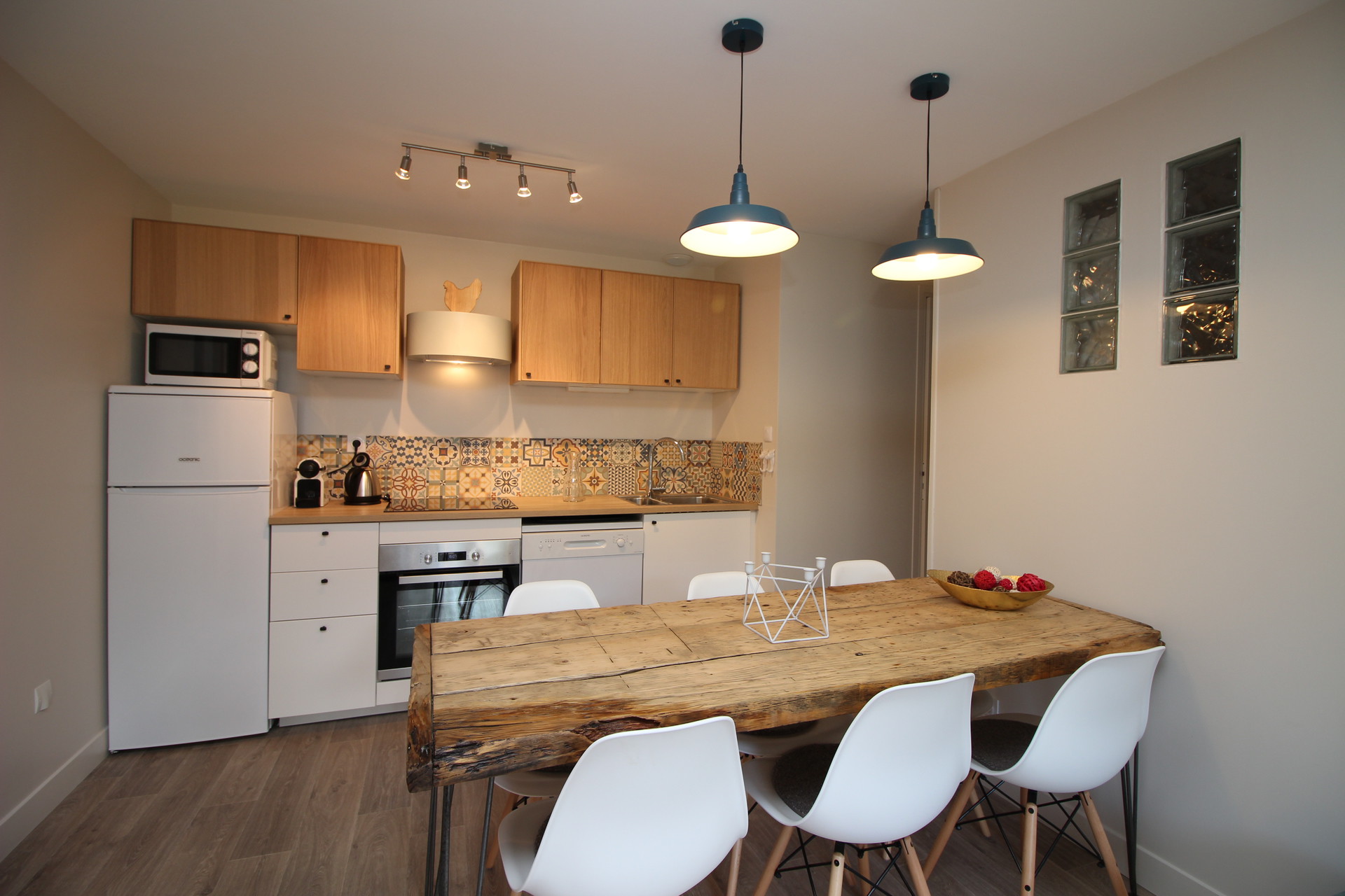 Il comprend une entrée, pièce à vivre , cuisine US totalement équipée avec réfrigérateur / congélateur grand modèle, four, lave-vaisselle, micro-ondes ....