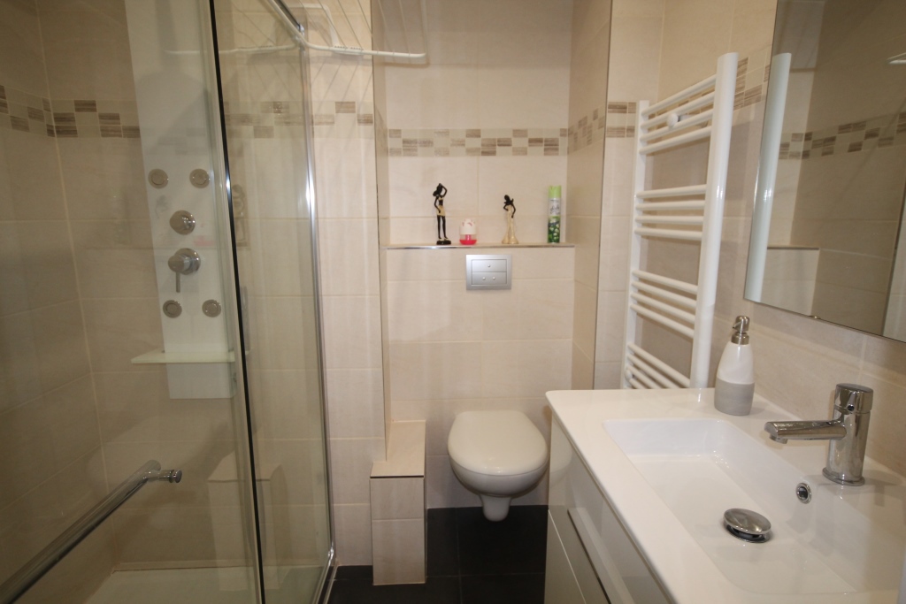 Salle d'eau avec douche et WC .