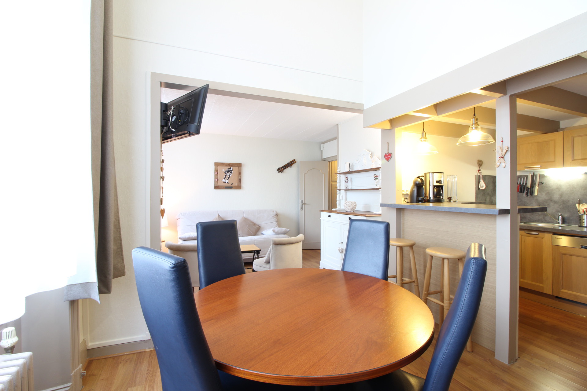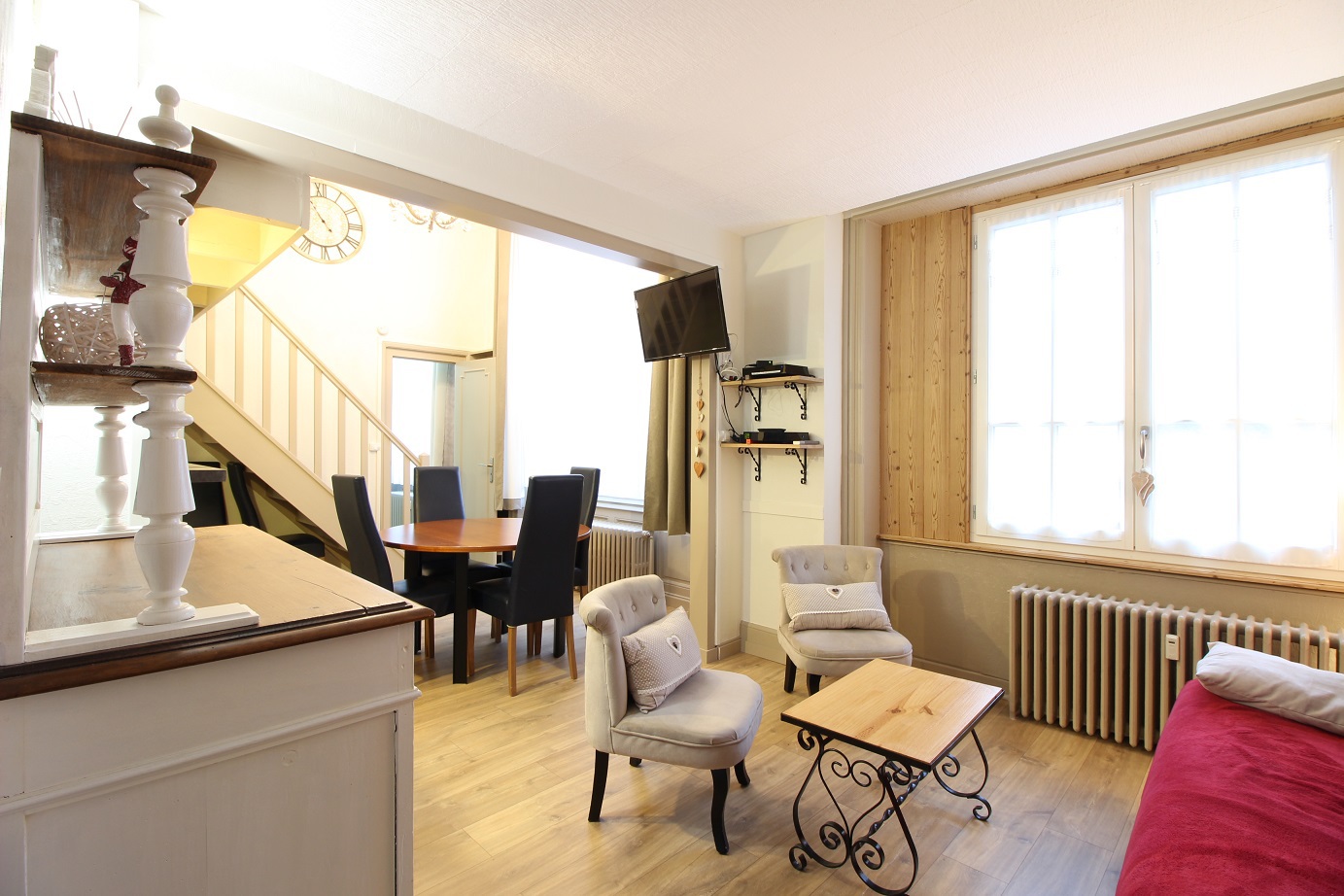 belle pièce à vivre équipée d'un convertible en couchage double de type clic-clac,