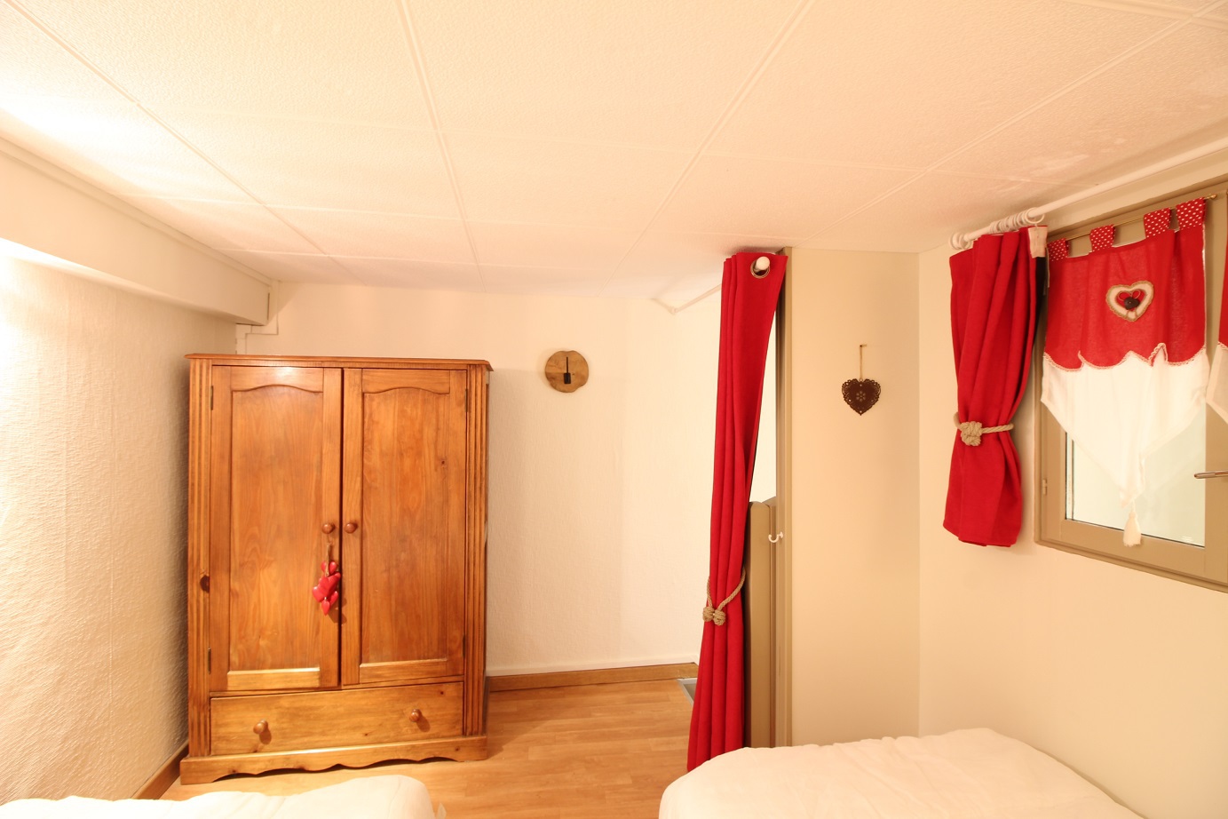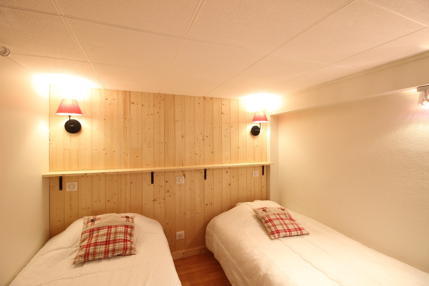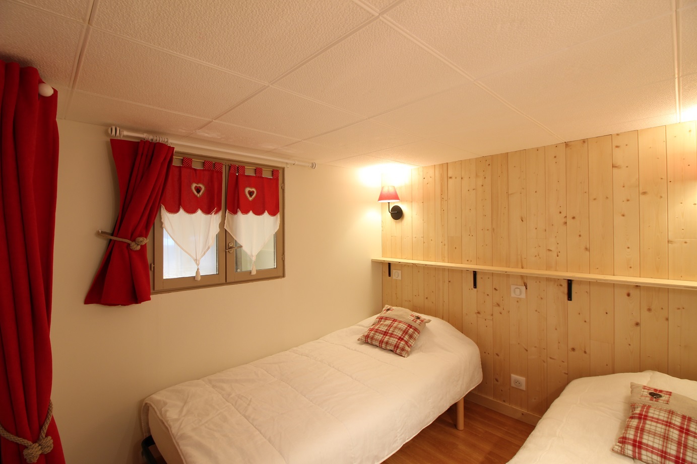 A l'étage, un espace couchage avec 2 lits simples (90) Hauteur sous-plafond 1.76m.