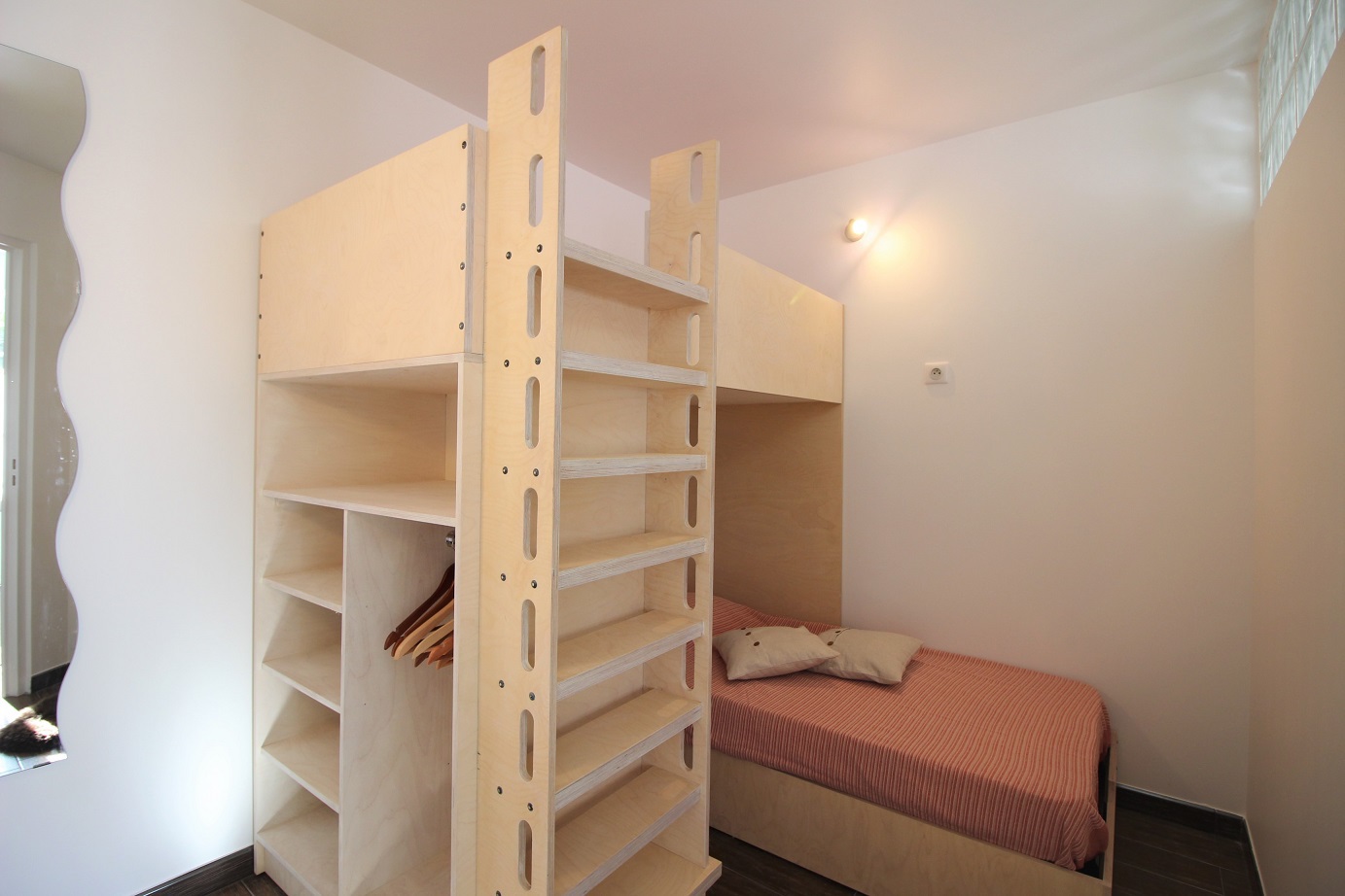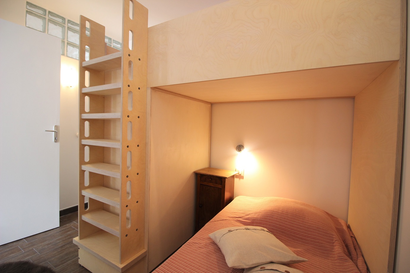 Une chambre borgne avec couchage 1 personne et lit 1 personne en mezzanine.