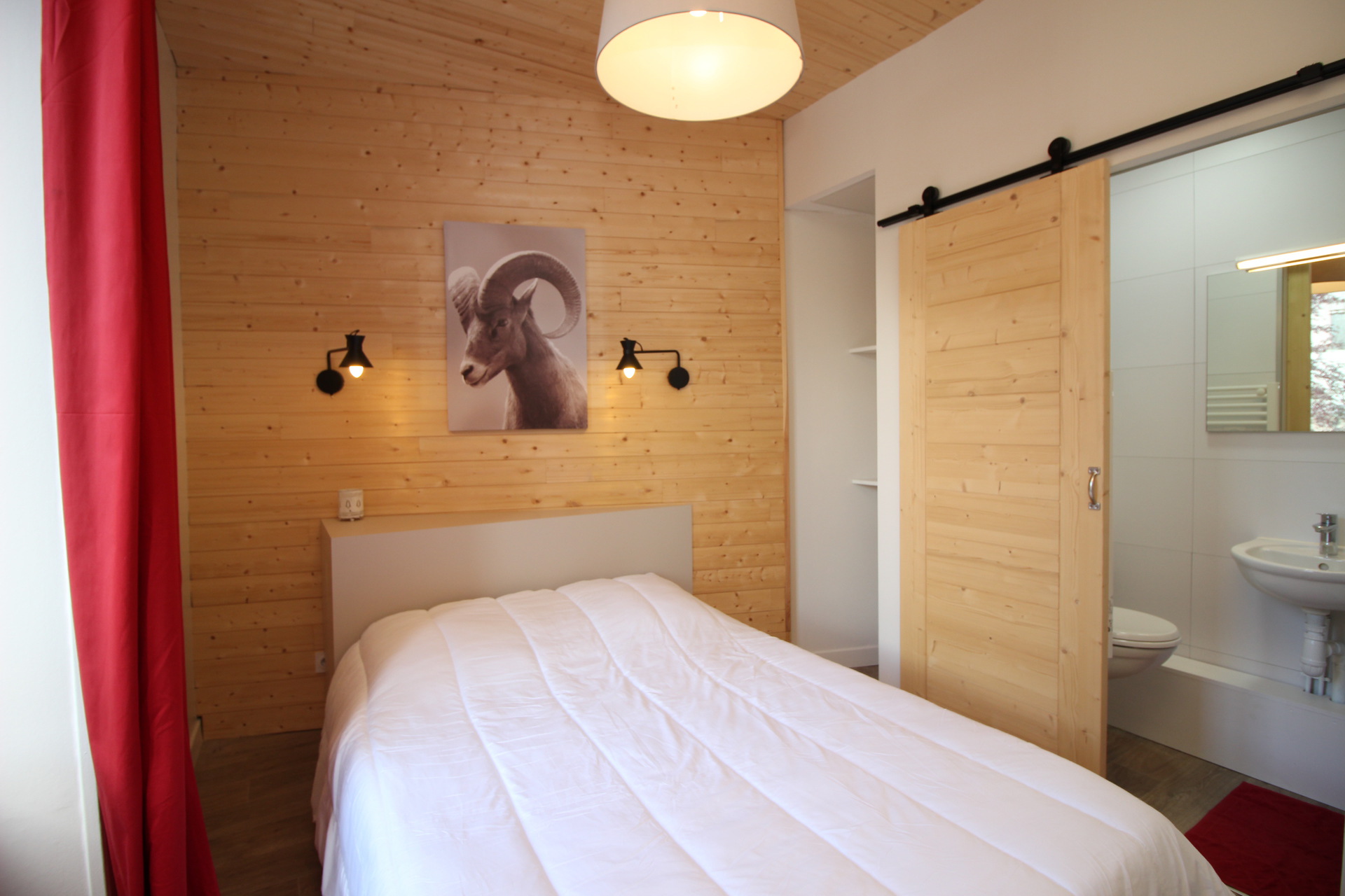Une chambre lit 140 avec salle d'eau /wc, sèche-serviettes et lave linge.
