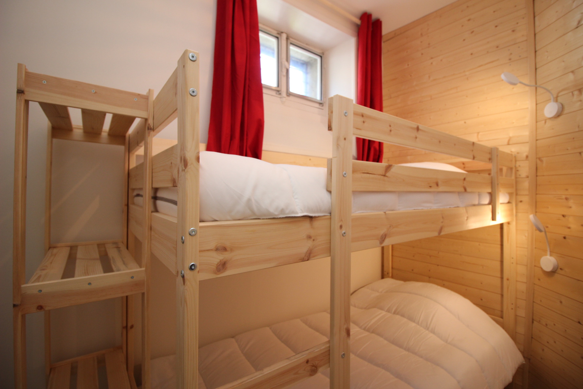 En annexe séparée de l'appartement à mi-palier en dessous, une chambre cabine avec lits superposés, wc avec lave-mains.