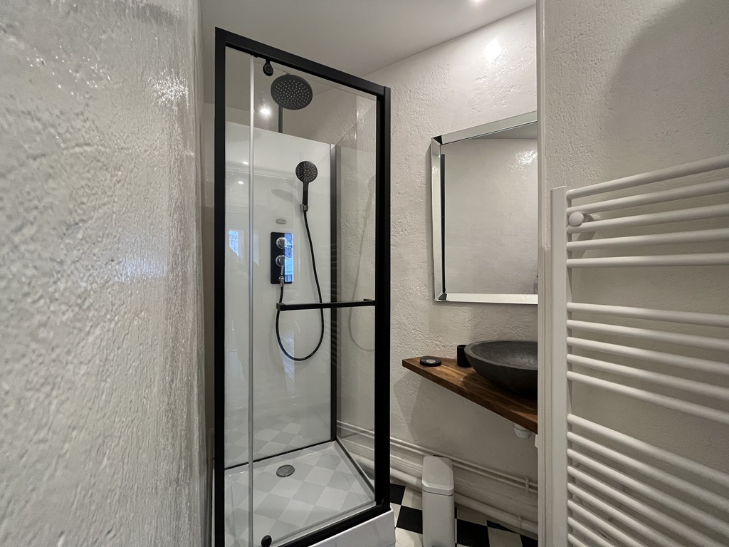 Enfin, une salle d'eau principale avec douche, un WC indépendant et un petit espace buanderie avec lave-linge complètent ce beau produit.
